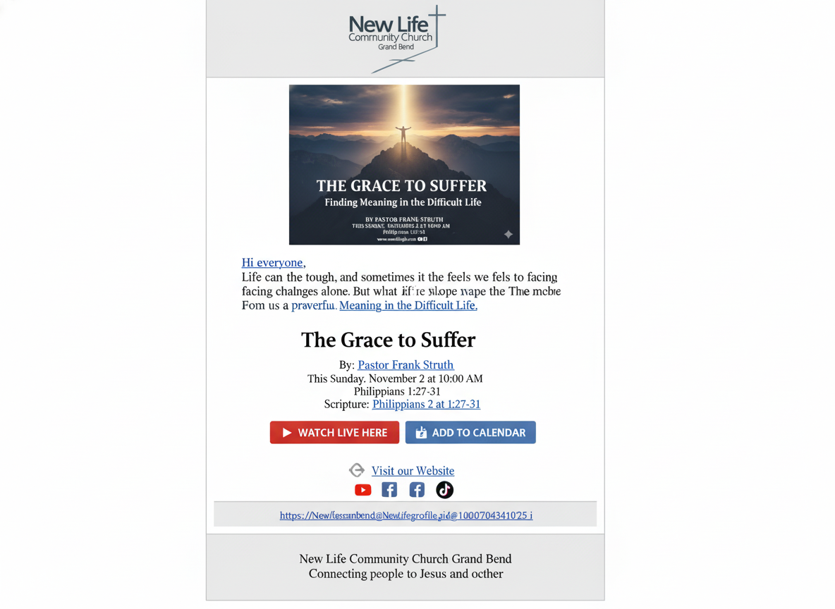 In this powerful message, Pastor Frank Struth unpacks the challenging but rewarding truth found in Philippians 1:27-30: that God extends to believers the Grace to Suffer Well. read more -
